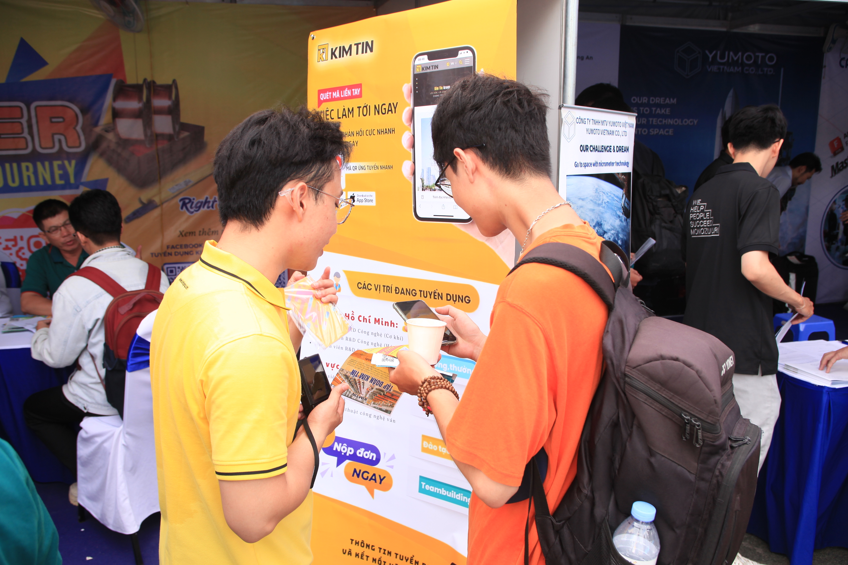 Đại diện Kim Tín cũng dành thời gian trò chuyện, chia sẻ kinh nghiệm và lắng nghe nguyện vọng của các bạn sinh viên – thể hiện tinh thần cầu thị và cởi mở trong việc kết nối thế hệ trẻ với doanh nghiệp. Sự hiện diện của Kim Tín tại Ngày hội không chỉ là cơ hội tuyển dụng, mà còn là cầu nối giữa tri thức và thực tiễn – nơi các kỹ sư tương lai được định hướng và truyền cảm hứng cho hành trình nghề nghiệp phía trước.