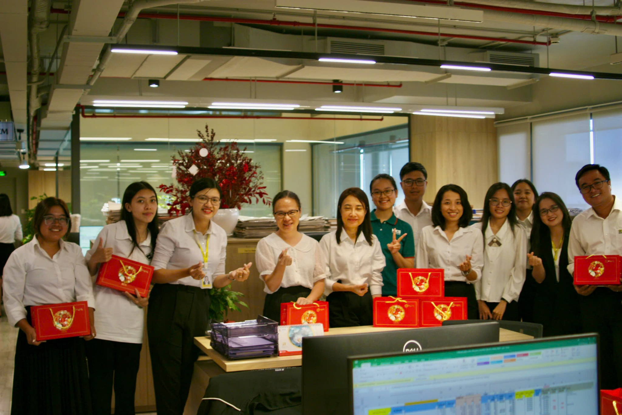 CBNV công ty vui vẻ nhận những món quà trung thu ấm áp