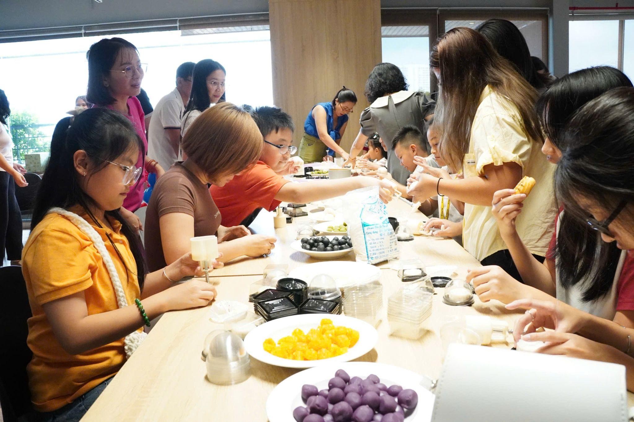 CBNV cùng các bé hòa mình vào hoạt động làm bánh dẻo trung thu